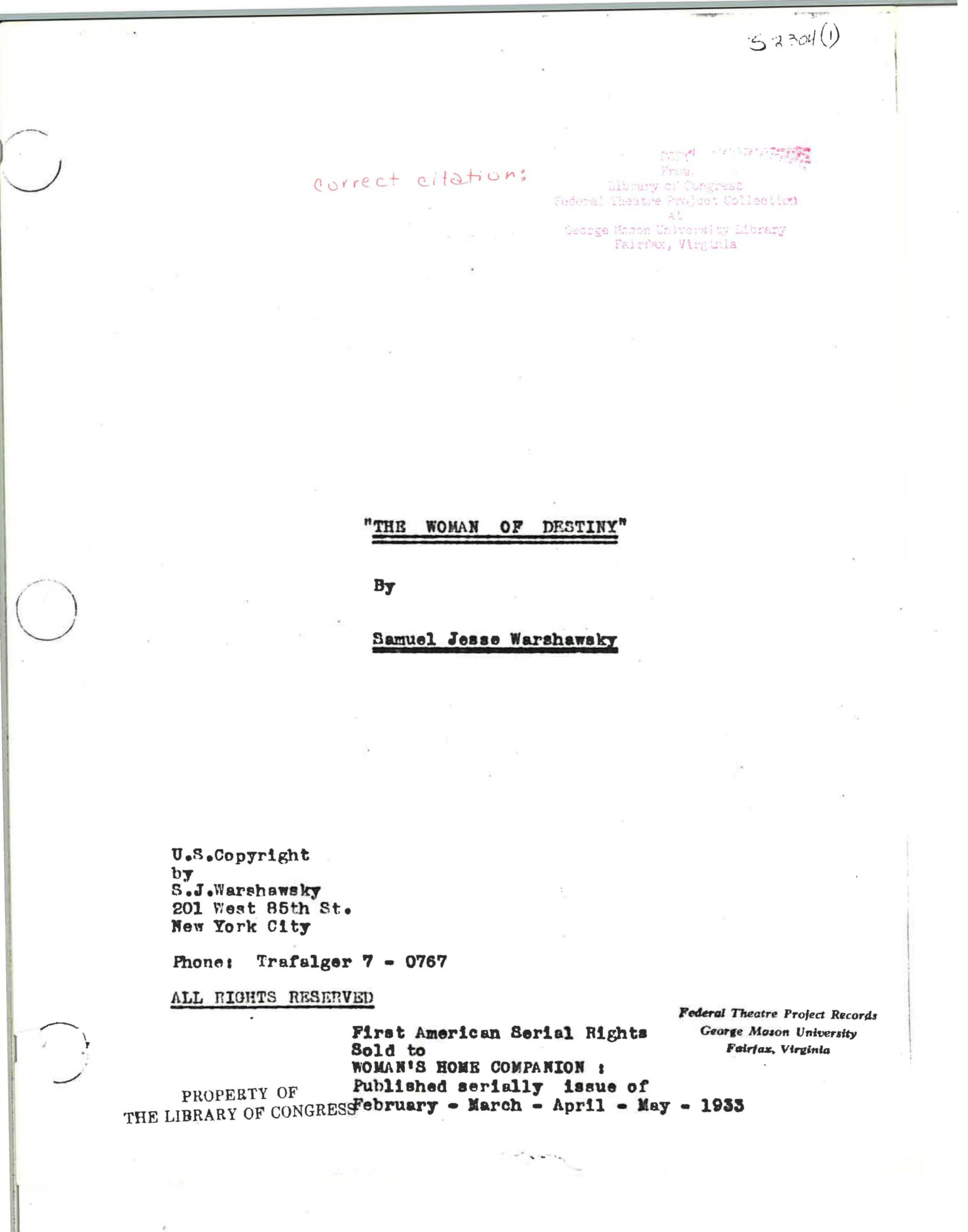 - Federal Theatre Project, C0002, Box 227, Folder 1