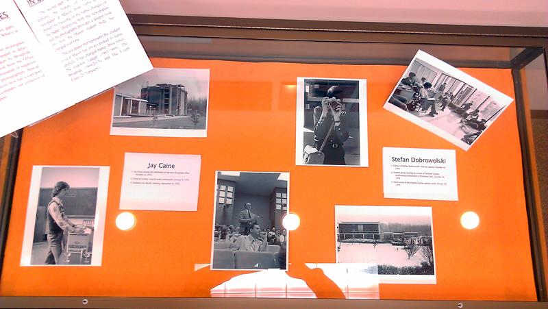 This exhibit was inspired by the recent donation of negatives by Broadside photographers from the Office of Student Media and looks in equal measure to the future as to the past. The changes undergone in the format and scope of the student newspaper since 1963 are only glimpsed at in this exhibit, but hopefully it demonstrates how important the student newspaper is as an historical source. Today there are many changes happening in publishing as society transitions to digital media from the printed word. With the recent name change from Broadside to Fourth Estate I was curious what previous Fourth Estate editor Colleen Wilson had to say about the future of the student newspaper. She provided this quote for the exhibit: