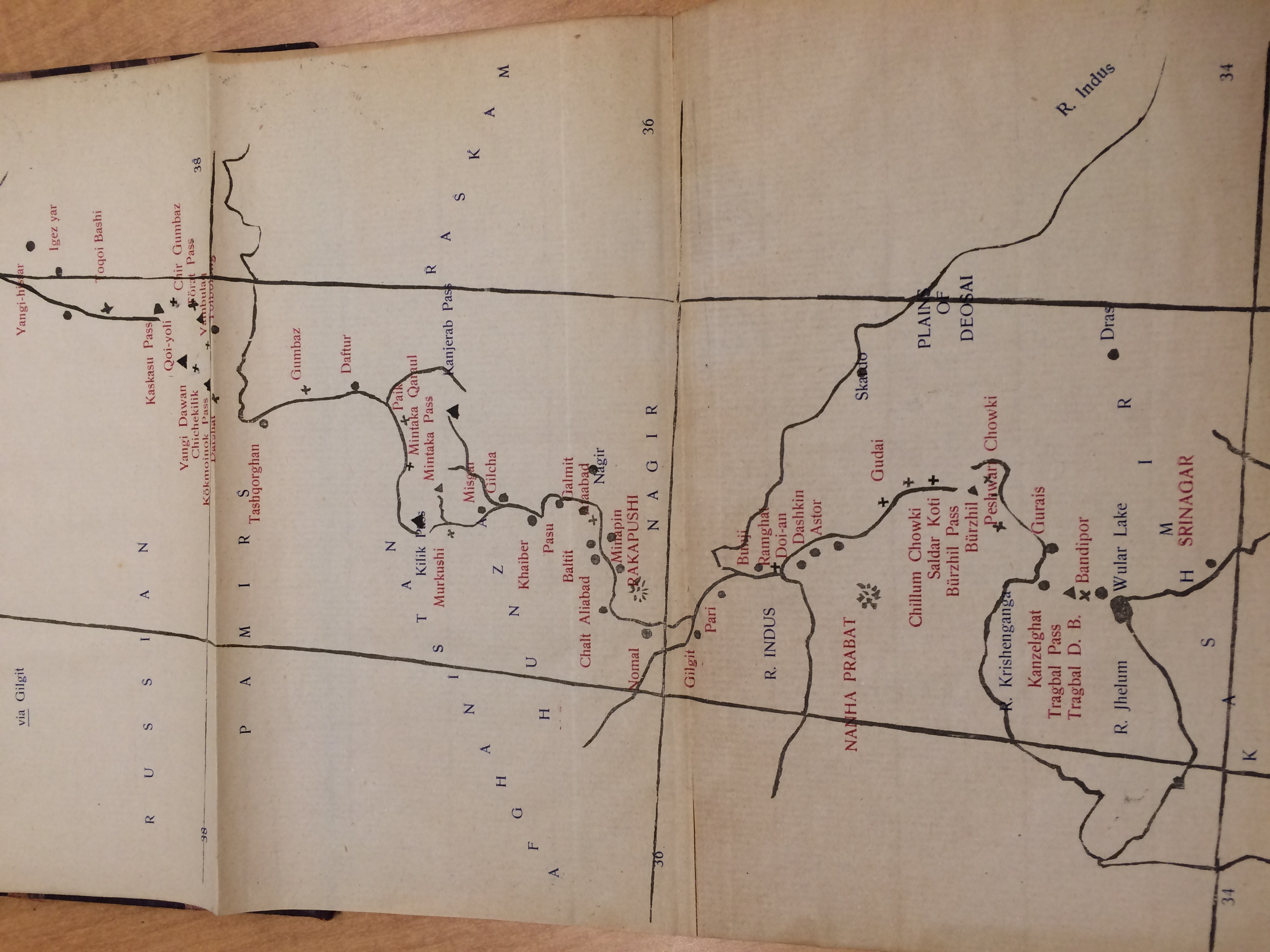 Kashgar cloth cover (according to the author) or Fold-out map at the back. Harding, H.I., Diary of a Jouney from Sringar to Kashgar via Gilgit, DS 485.K2 H27x, Special Collections Research Center, George Mason University.