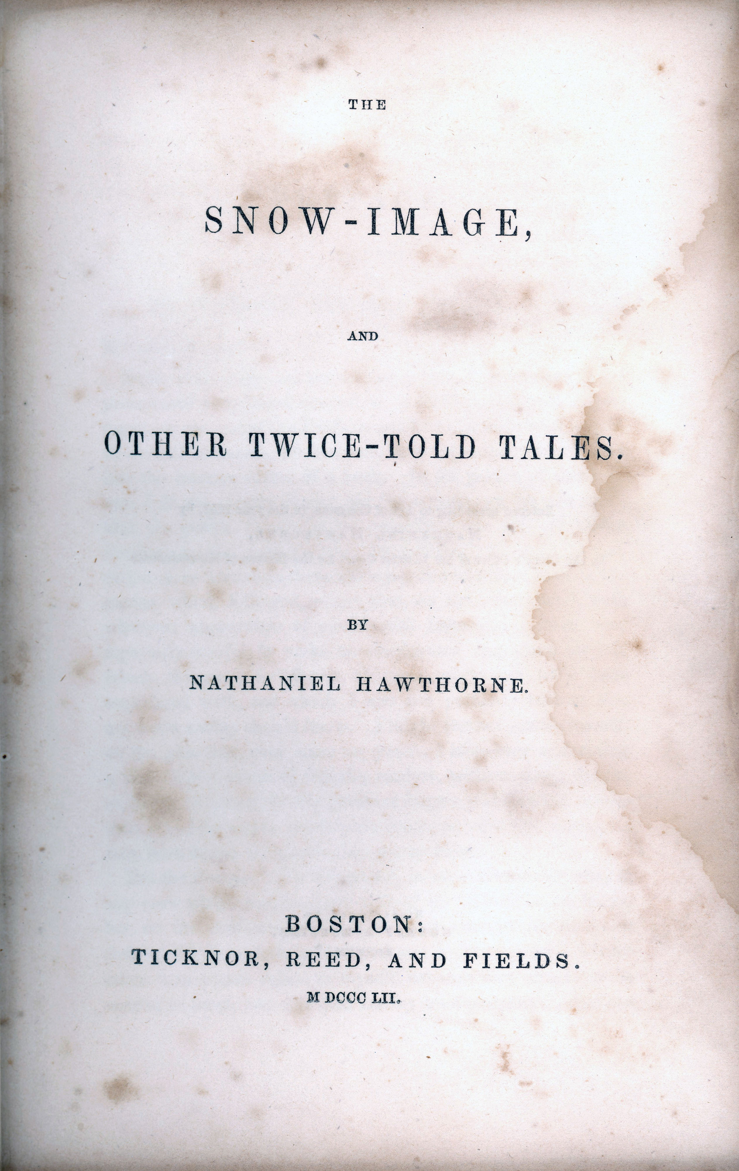 Hawthorne, Nathaniel, The Snow-Image, and Other Twice-Told Tales, PS1872 .S65 1852, Special Collections Research Center, George Mason University.