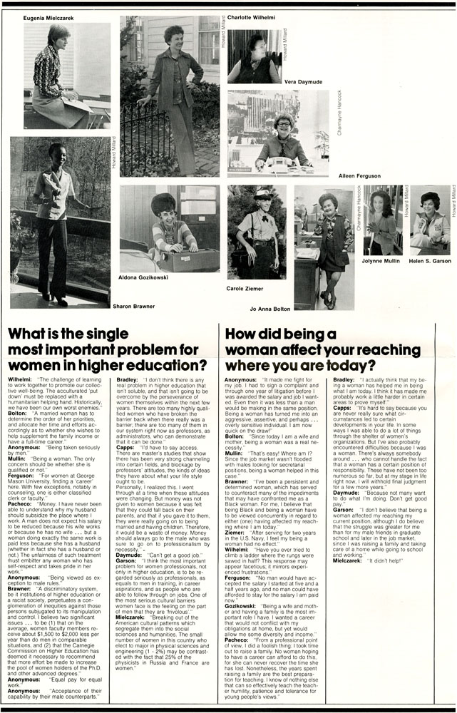 “Women at George Mason Speak Out” page 2, Eugenie V. Mielczarek collection, C0059, Box 9, Folder 8, Special Collections Research Center, George Mason University.