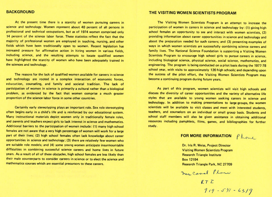 “Visiting Women Scientists Program, 1977-78” page 2 and 3, Eugenie V. Mielczarek collection, C0059, Box 19, Folder 11, Special Collections Research Center, George Mason University.