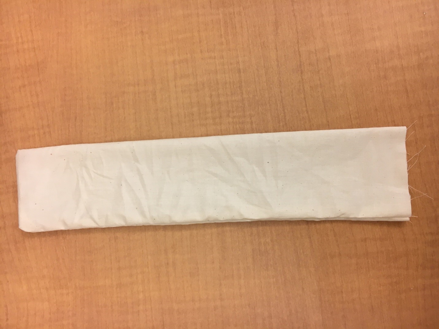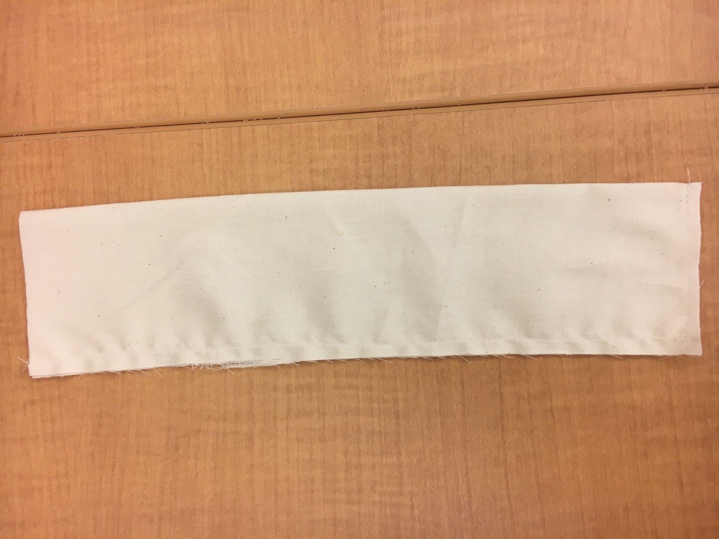 Once you’ve decided on fabric and size, sew up your weight, leaving one side open to fill. Folding a single piece of cloth that is twice the width or length you want means you only need to sew two sides instead of three.