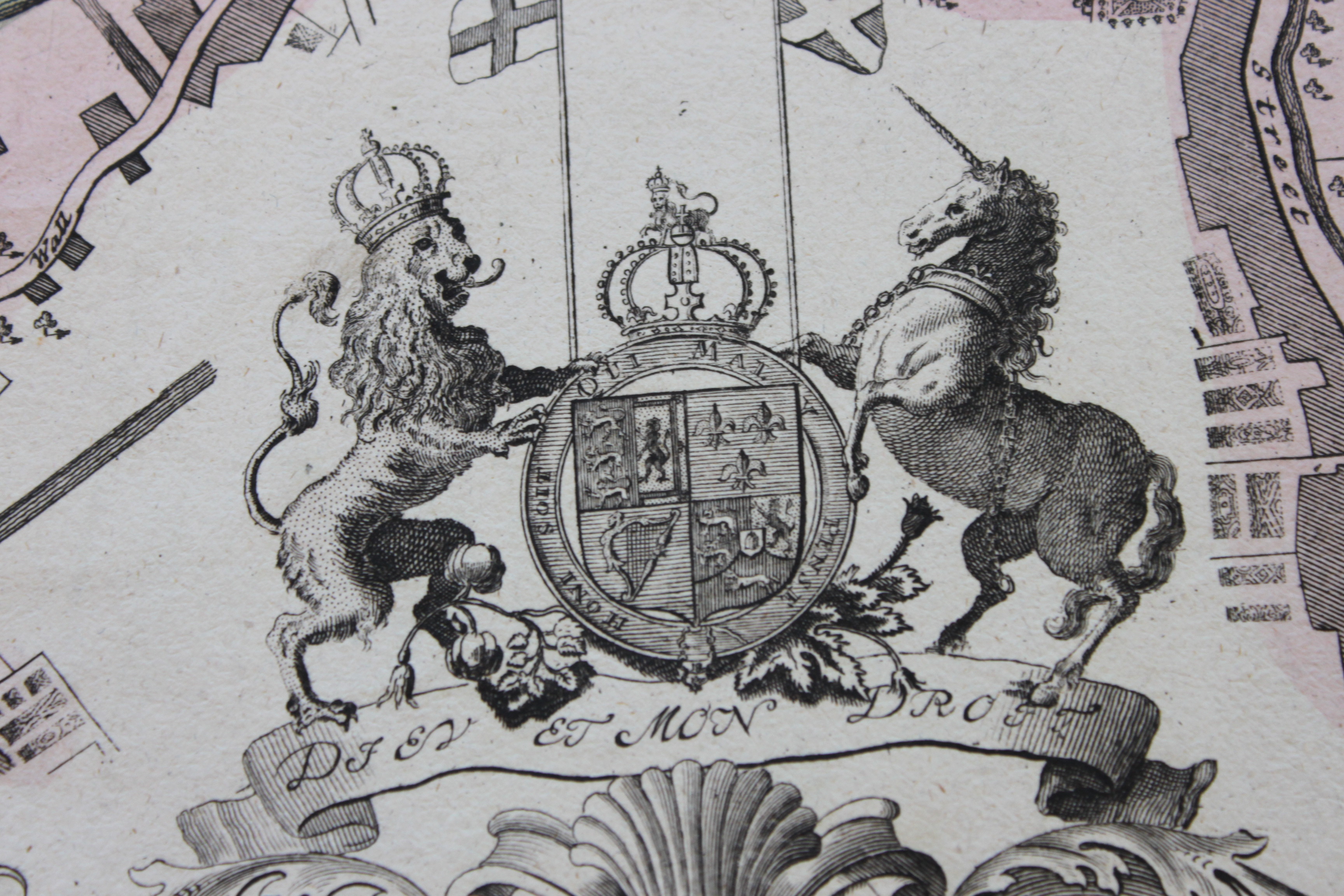 It was published in 1736 – a year in which Georg Friedrich Händel (1685-1759), William Boyce (1711-1779), and John Weldon (1676-1736) were active musicians. The description of the map is both in Latin and German, however, the streets and place names are labeled in English. This is a particularly interesting feature as Händel himself was a German-born composer who later lived and worked in England.