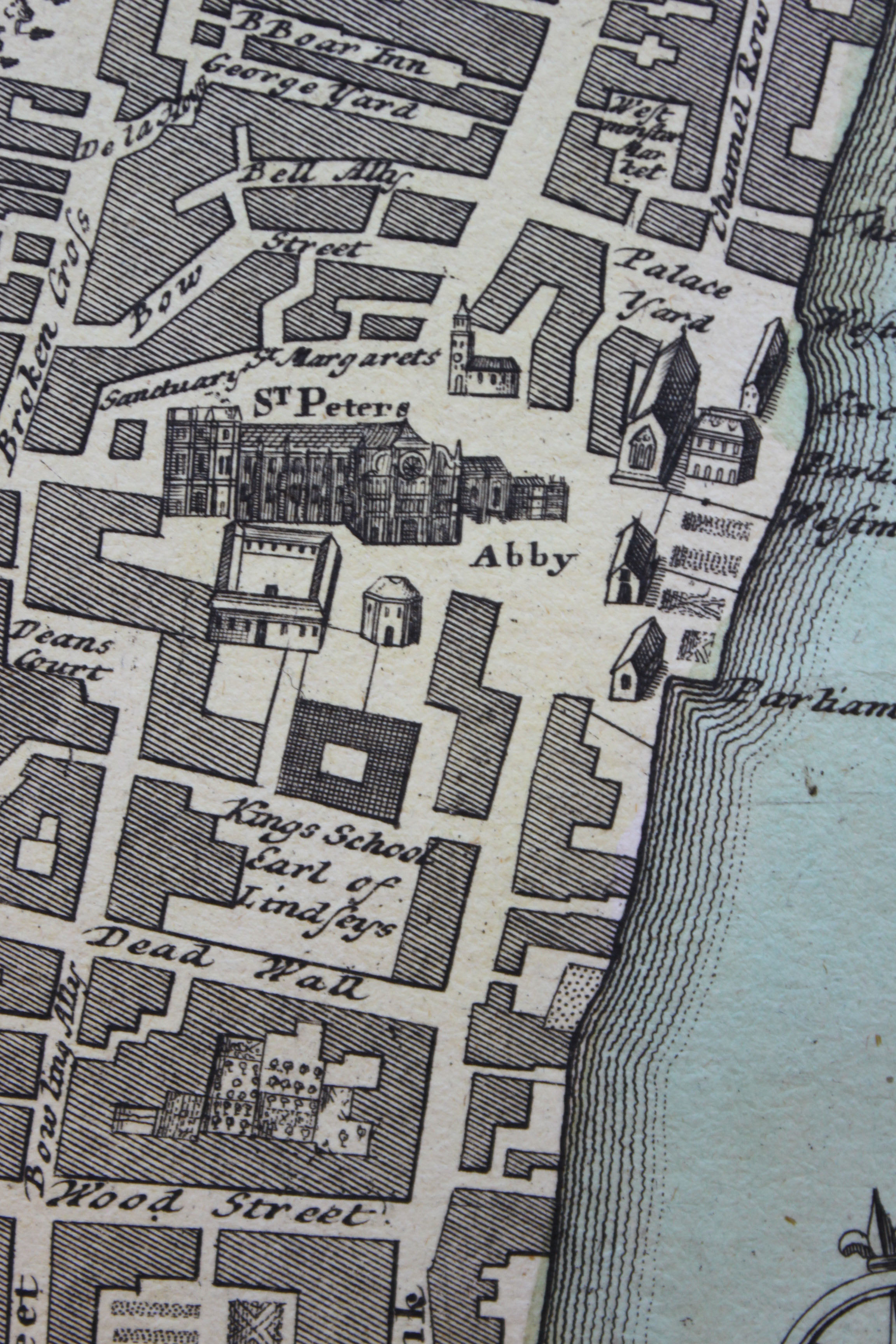A closeup of St. Peters Abby. Vrbium Londini map by Christophe Homann from the C. Harrison Mann, Jr. Map Collection #C0213, Folder 46, Special Collections Research Center, George Mason University Libraries.