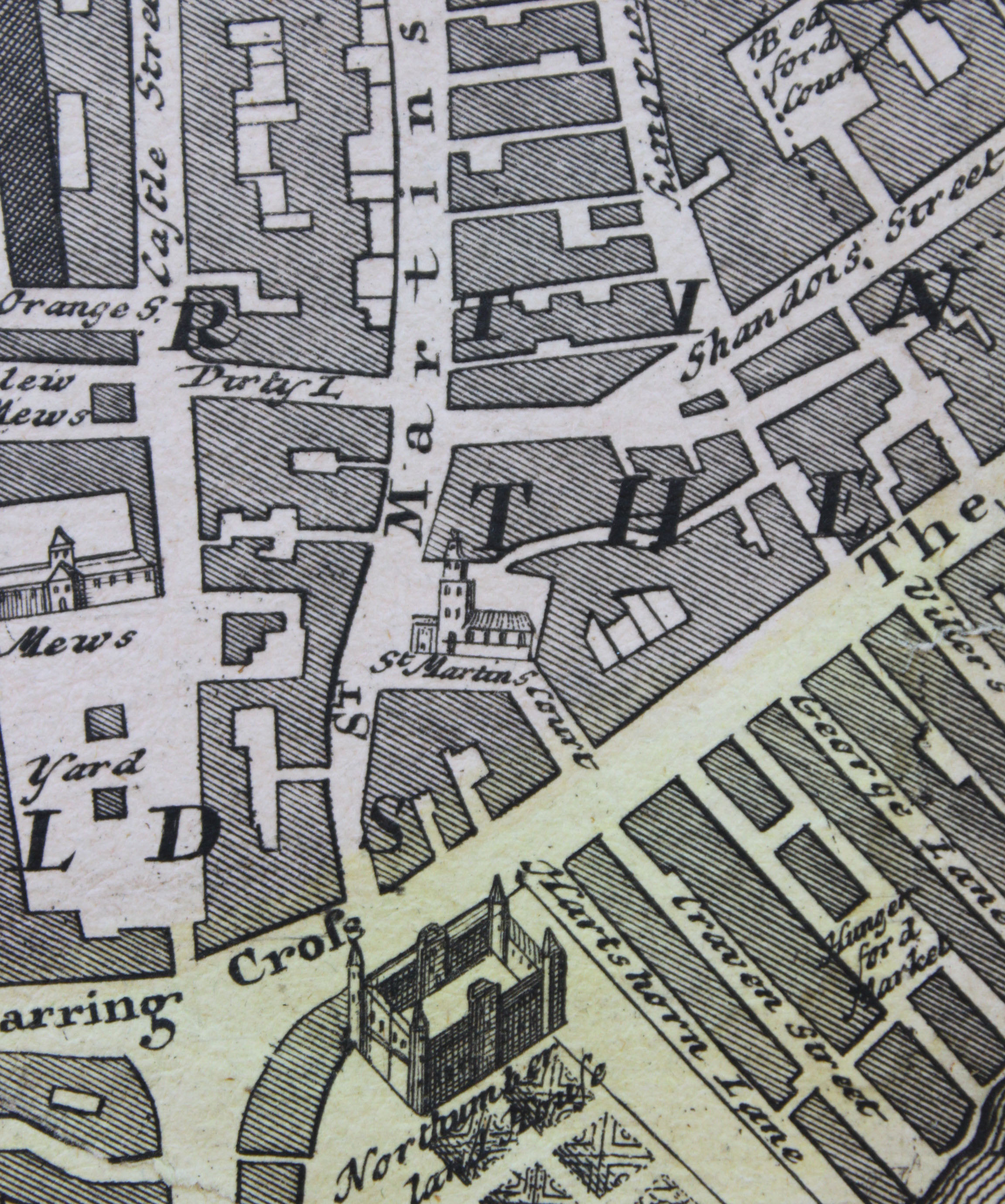 A closeup of St. Martin-in-the-Fields. C. Harrison Mann, Jr. Map Collection #C0213, Folder 46, Special Collections Research Center, George Mason University Libraries.
