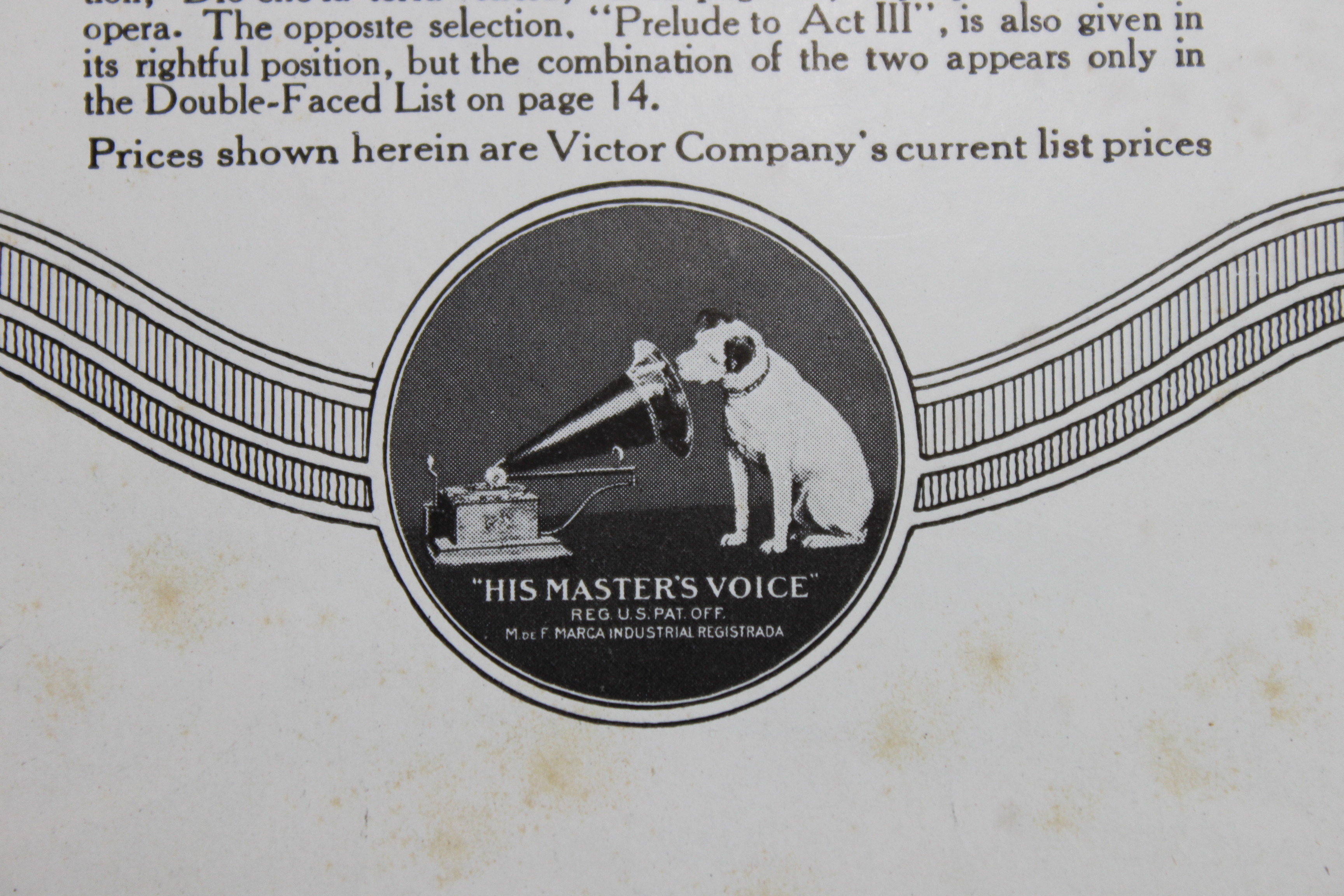 Detail of Victor Talking Machine Company logo. Rous, Samuel H., The Victrola Book of the Opera, MT150 .R697 1919, Special Collections Research Center, George Mason University Libraries.
