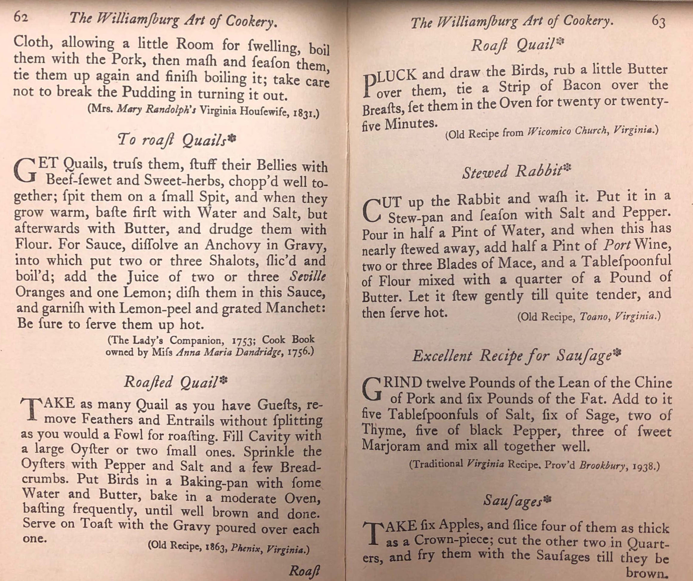 Bullock, Helen Duprey. The Williamsburg Art of Cookery, TX715 .B946 1938, Special Collections Research Center, George Mason University Libraries.